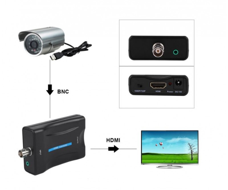 Този BNC към HDMI видео конвертор може да преобразува аудио и видео сигнали във формат 480I (NTSC) / 576I (PAL) в 720P или 1080P HD HDMI сигнал, но също така може да въвежда HDMI сигнал във формат с висока разделителна способност. Може лесно да се свърже към DVD, приемник, плейъри с висока разделителна способност, игрална машина (за PS2, PS3, PSP, WII, XBOX360 и т.н.), което ви осигурява завладяващо изживяване при гледане. Поръчайте го!