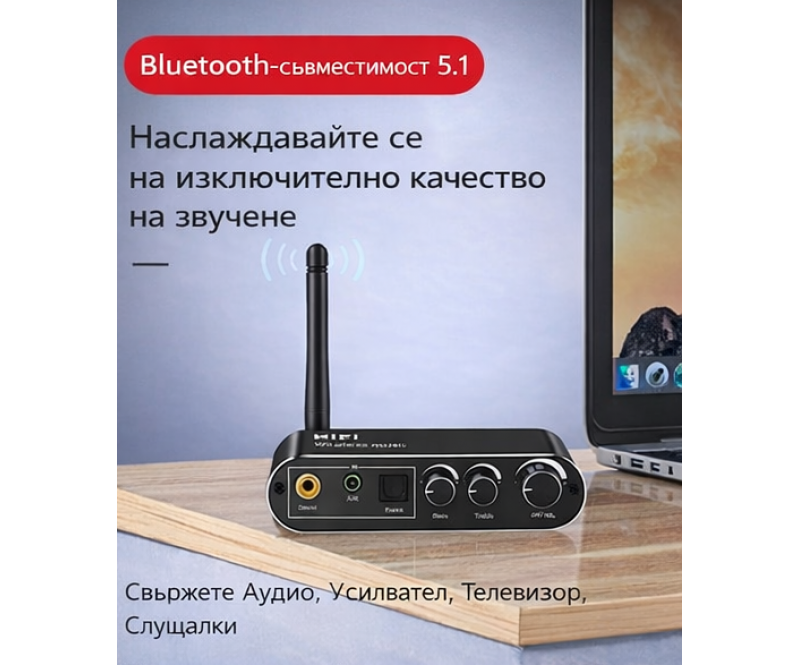 + Цифров Bluetooth предавател | Bluetooth 5.1 технология: Изпитайте стабилно предаване на звук без забавяне с Bluetooth 5.1, осигурявайки обхват от 20 метра без препятствия.