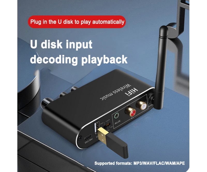 Блутут ДАК Рисивър с оптичен изход / 3.5mm Aux / USB Disk / DAC с дистанционно